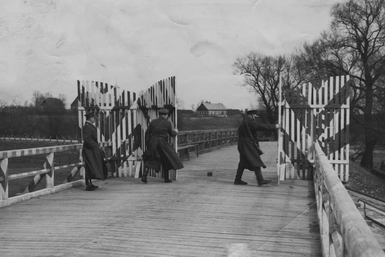 Pasienio kontrolės punktas ant tilto per Merkį, 1920 m.