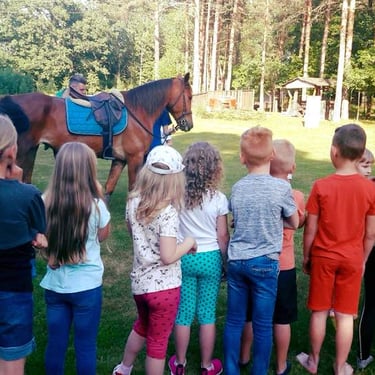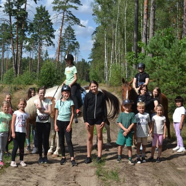 Stovyklų pamainos organizuojamos mūsų žirgyne, kurios metu vaikai turi galimybę pamatyti tikrąjį kaimo gyvenimą, smagiai praleisti laiką gamtoje su savo bendraamžiais, o svarbiausia, susipažinti su žirgu - gyvūnas, kurio dėka žmogus pastatė šiandieninį pasaulį.